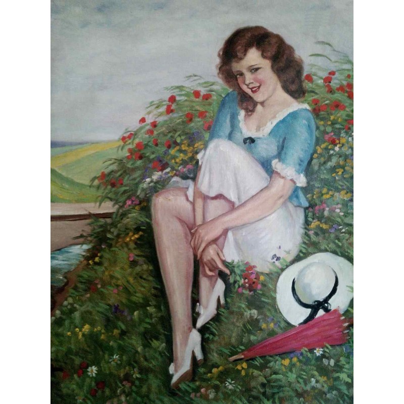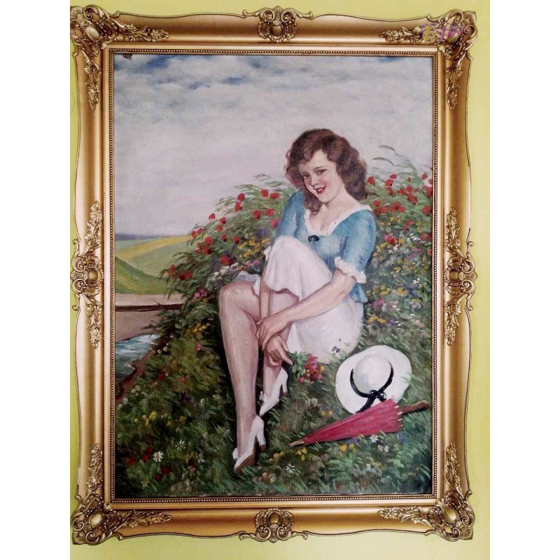 Gyönyörű pihenő hölgyet ábrázoló kép az 1900-as évek elejéről. A művészre jellemző egyedi és összetéveszthetetlen stílusjegyekkel.
