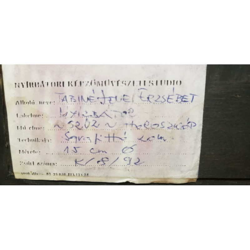 TABINÉ JENEI ERZSÉBET zsűrizett művészi alkotása a kép hátulján címkézve.