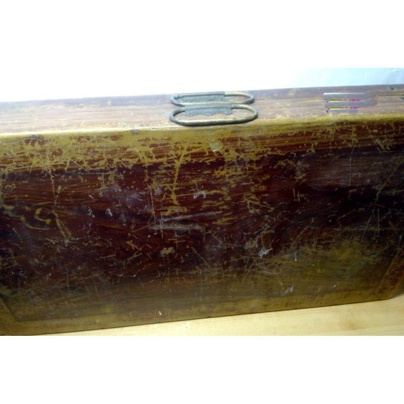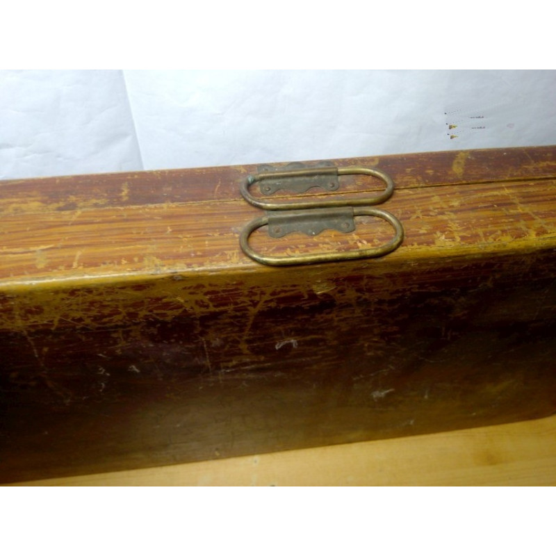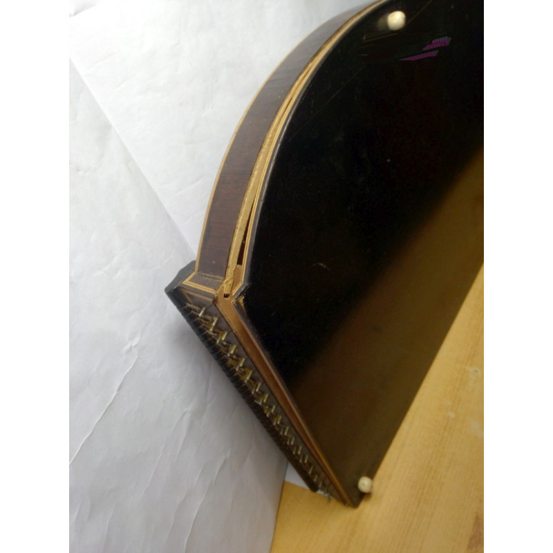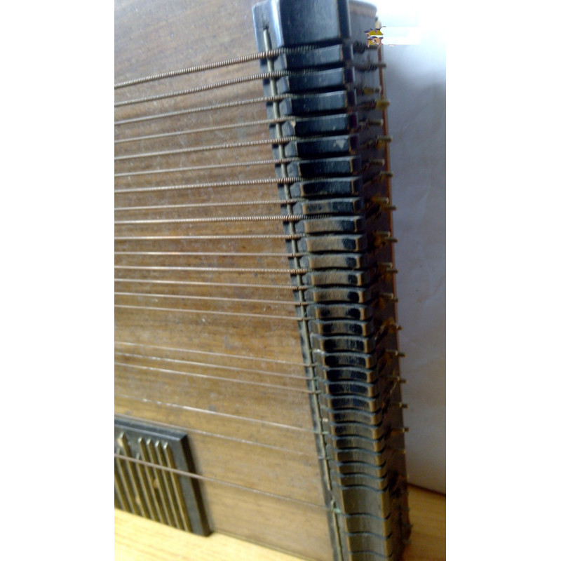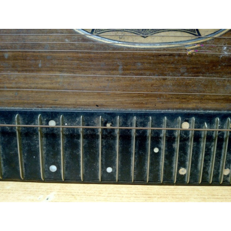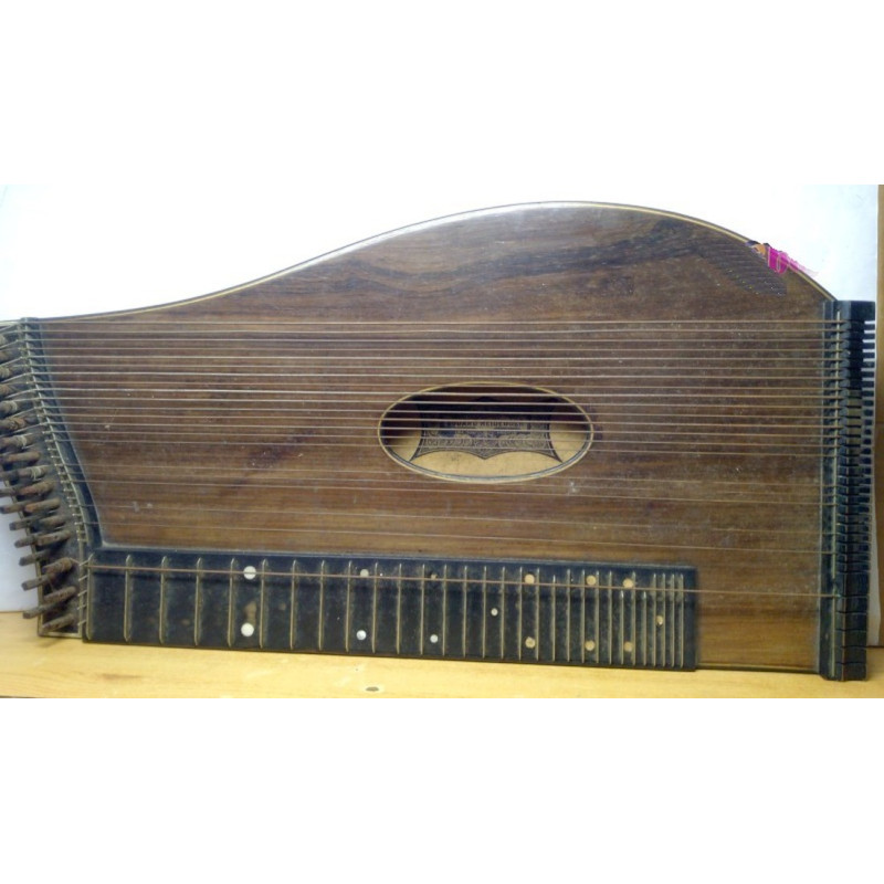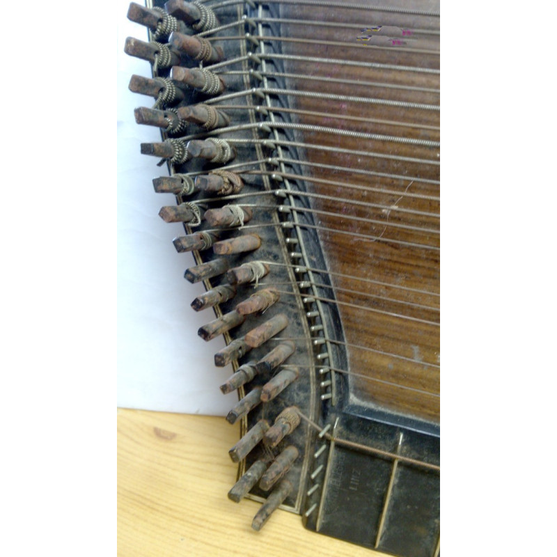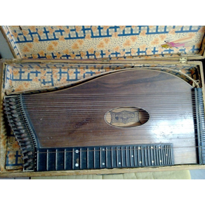 Természetes fából, kézműves technikával készült pengetős antik hangszer a XIX. század végéről. Eredeti dobozában, aminek a zsanérjai már elengedtek.