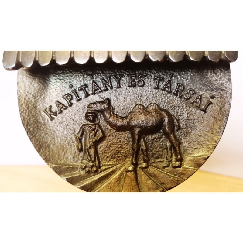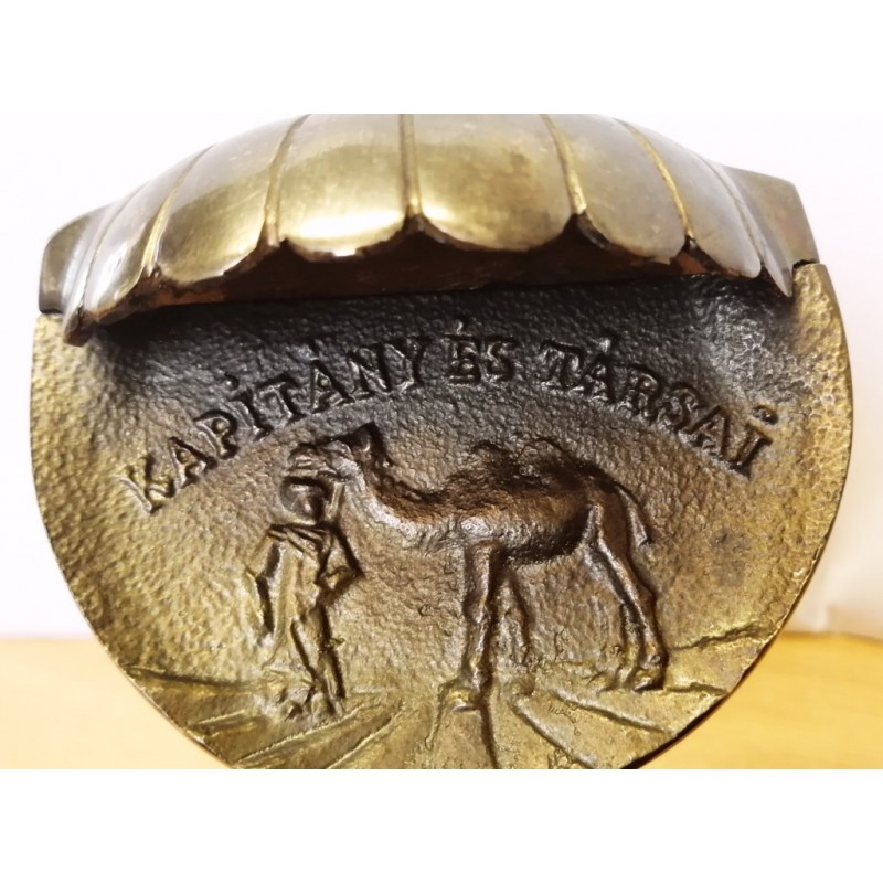 Bronz hamuzó emléktárgy kétpúpú tevével márvány talapzaton