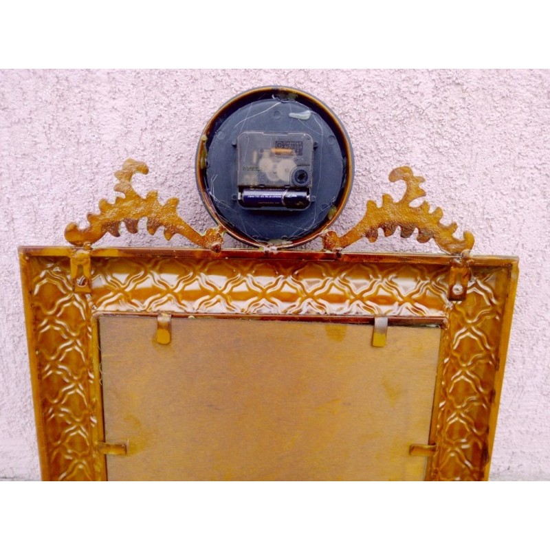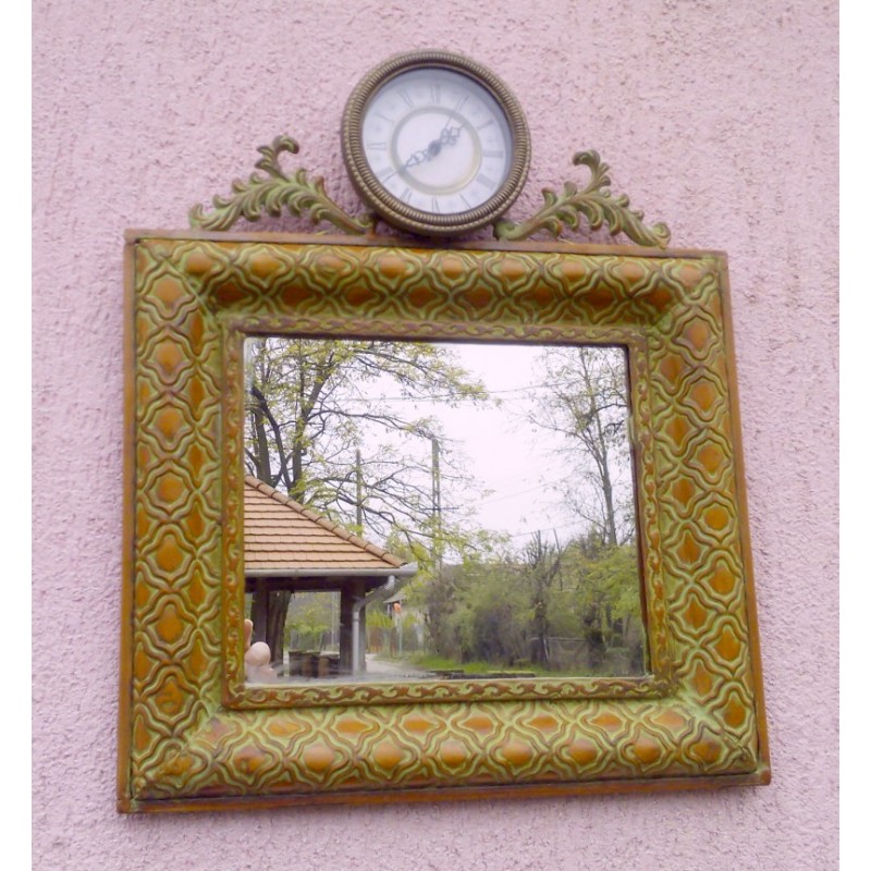 Falitükör órával antikolt öntöttvas keretben, rusztikus lakberendezéshez ajánlom