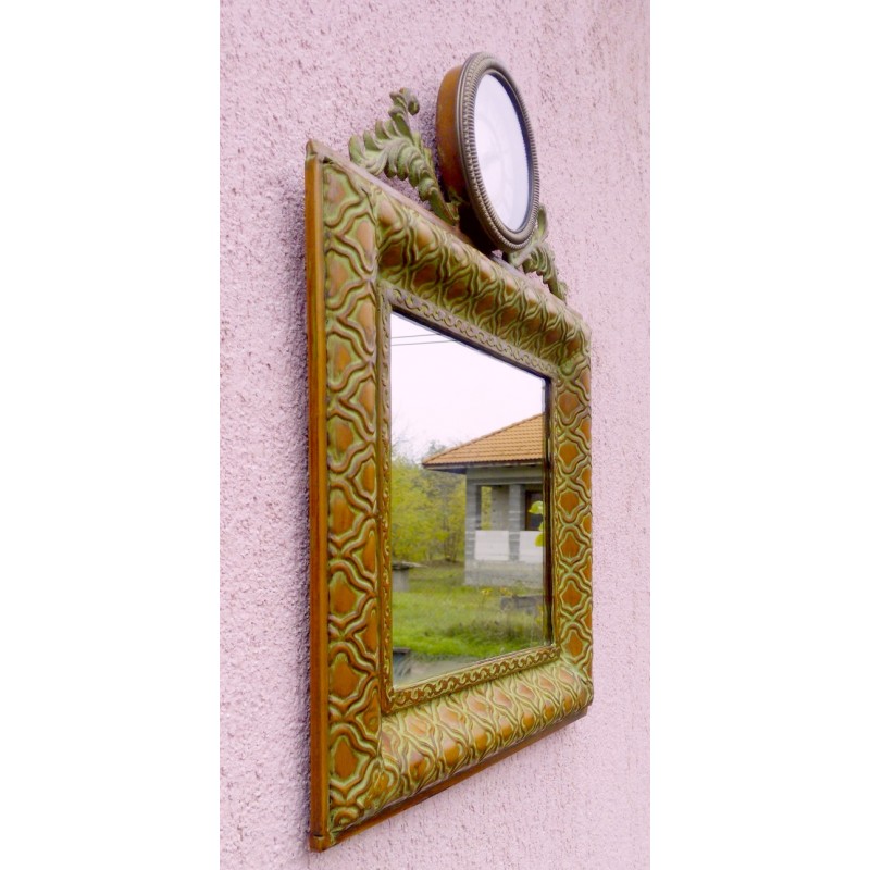 Új állapotú, teljes egészében kézműves munkával készült dekoratív tükör, barokk motívumokkal ékesítve.