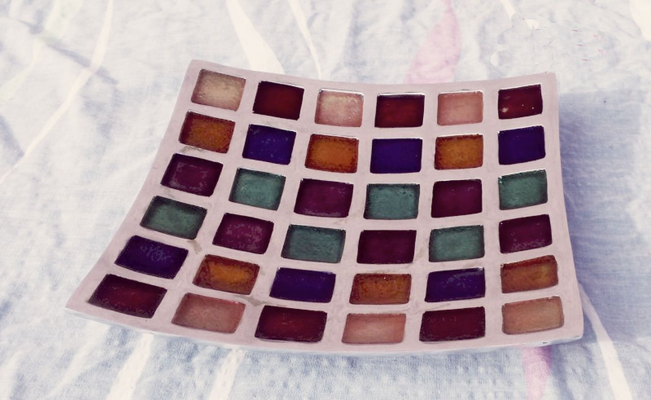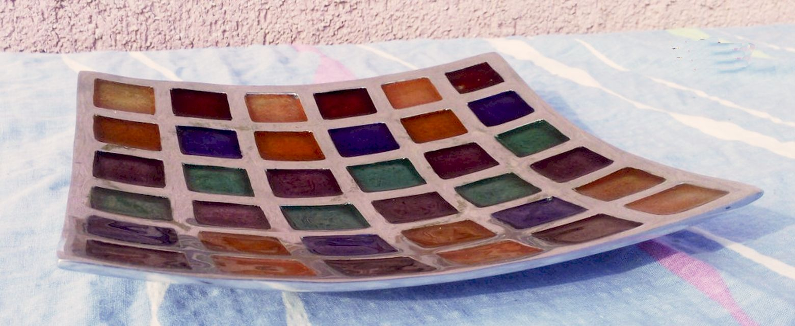 Ívelt felületű, festett színes négyzetekkel mintázott művészi kínáló az AZETI LTD UK. gyártmánya