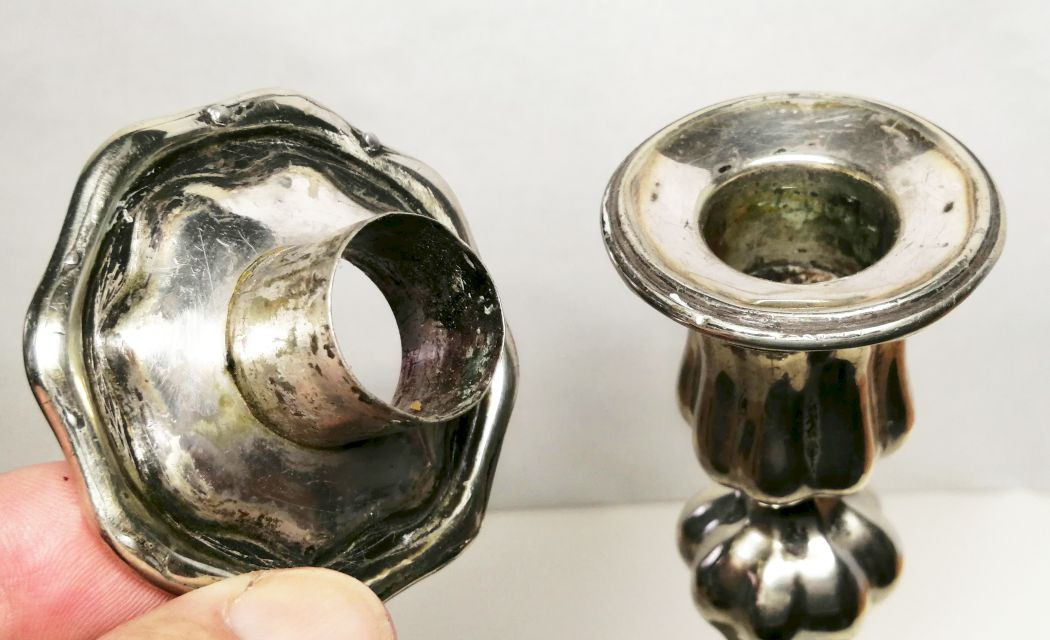 Neobarokk ezüstözött asztali gyertyatartó. Antik iparművészeti alkotás