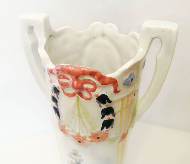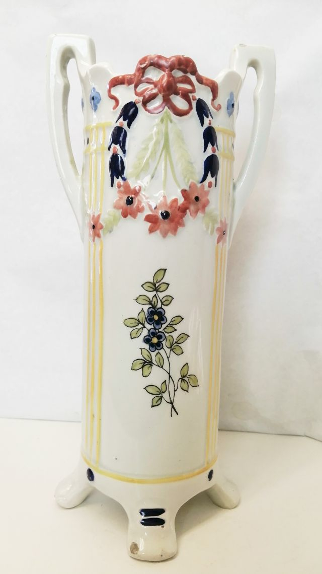 Antik copf stílusú füles váza virágokkal sorszámozott 1910-es évek