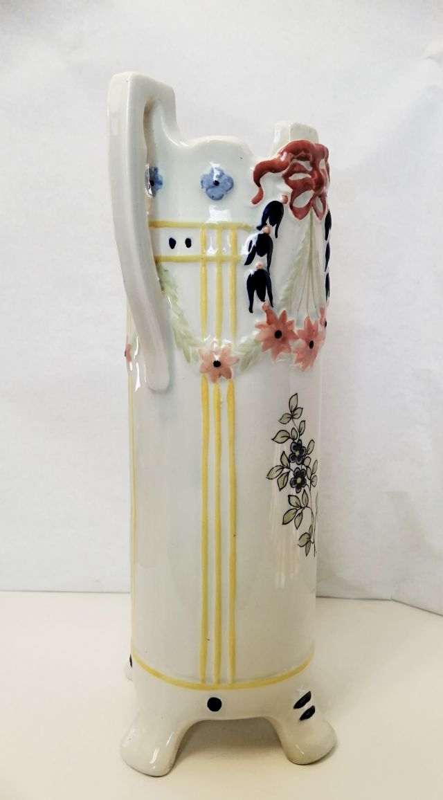 Gyönyörű, kézi festésű virágokkal ékesített füles váza, hibátlan állapotban fennmaradt, aprólékosan kidolgozott művészi munka.