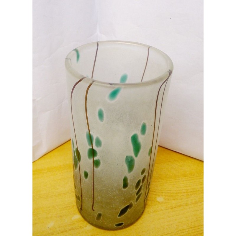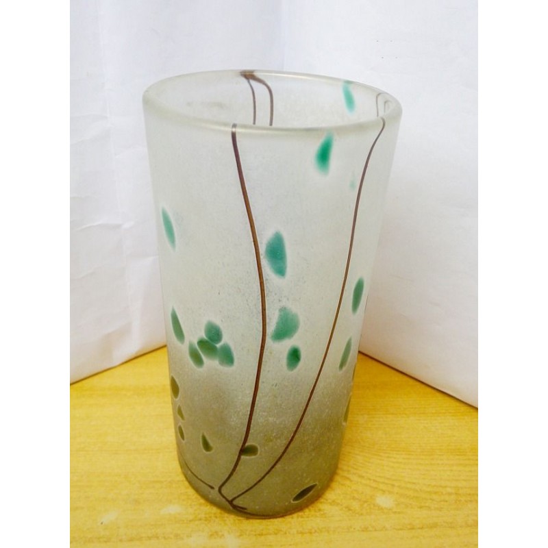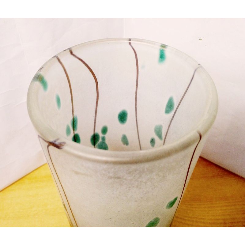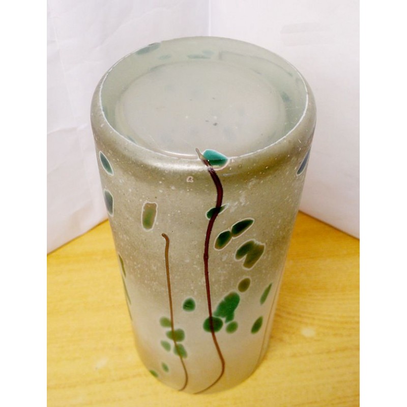 Szecessziós üvegműves műtárgy. Vastag falú indás váza, dekoratív ritkaság