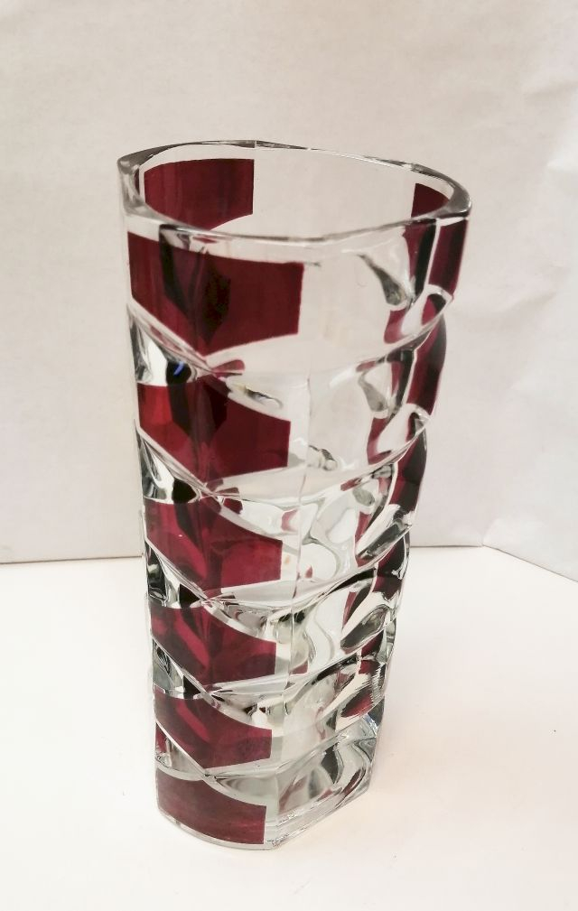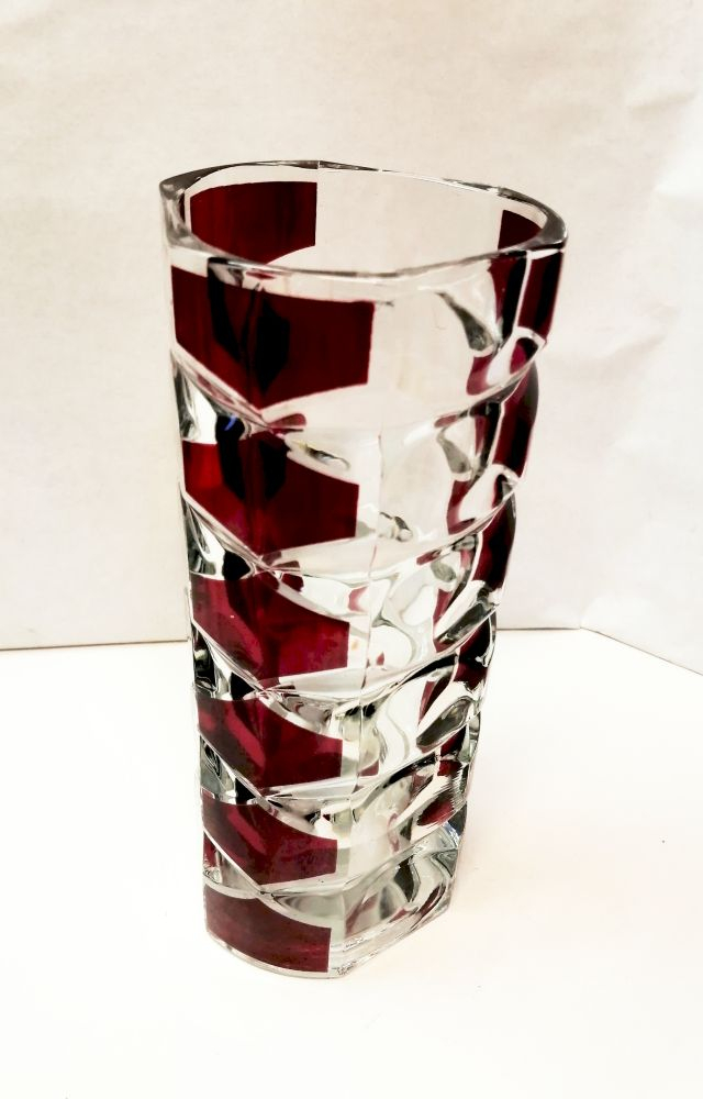 Vintage metszett kristály üvegváza Rubinvörös felületi dekorációval Francia
