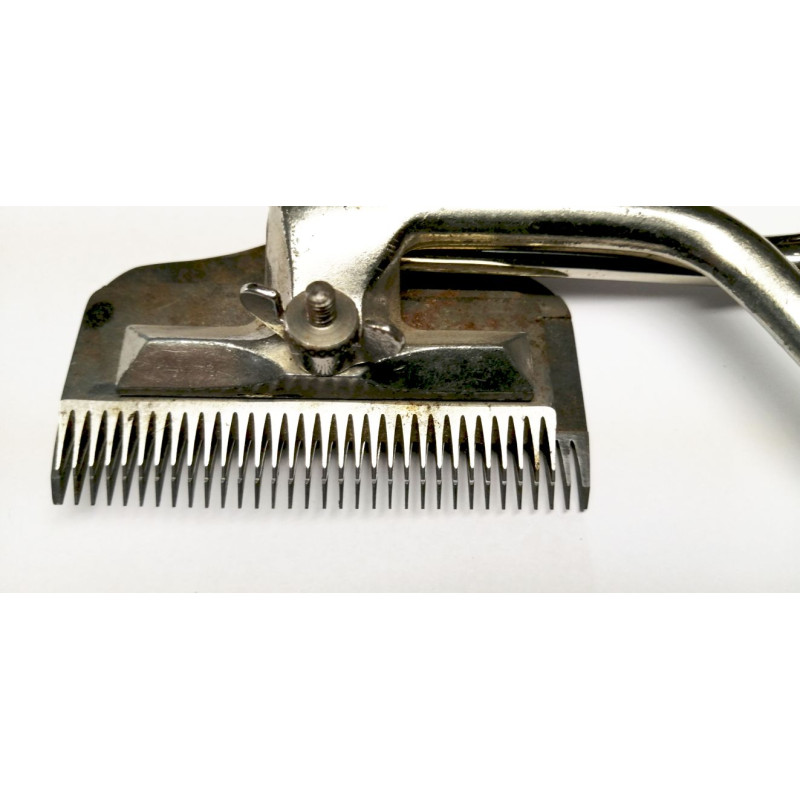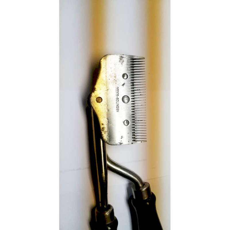 Tökéletes állapotban lévő, talán sohasem használt karos házi állatok szőrzetének vágására használható eszköz. A Genss Solingentől (1950-es évek körül).