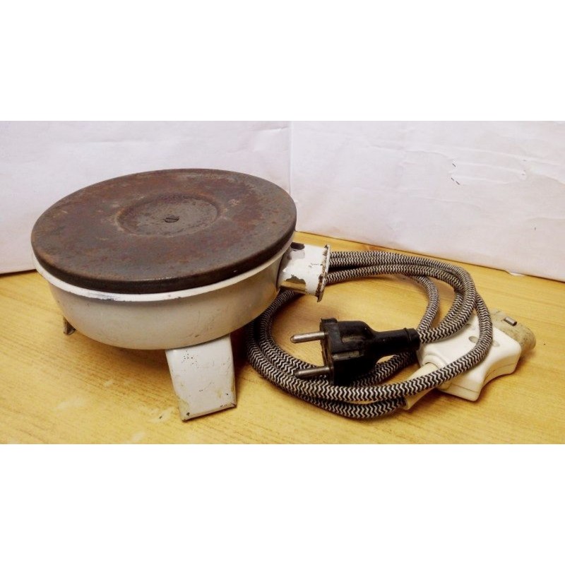 Régi zománcozott sajtolt acéllemezből készült, öntöttvas sütőlapos elektromos rezsó. Eredeti gyári hálózati kábellel, üzemképes.
