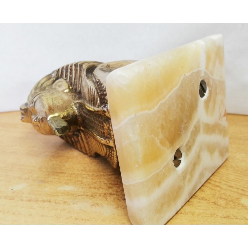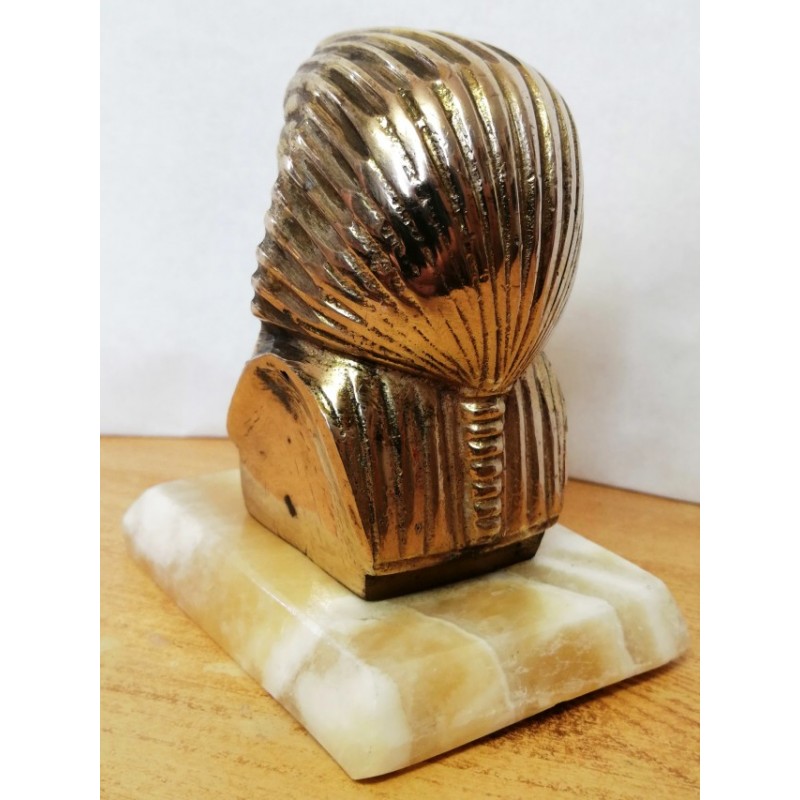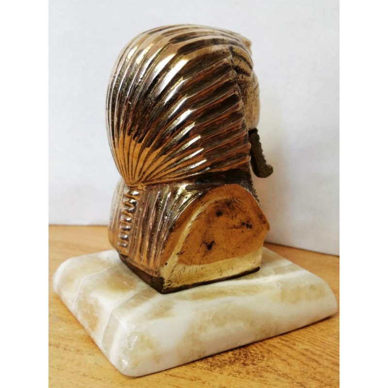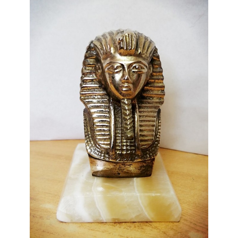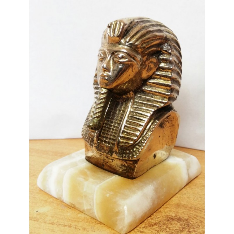 Fáraó, bronz torzó kisplasztika, sárgás Ónix talapzaton