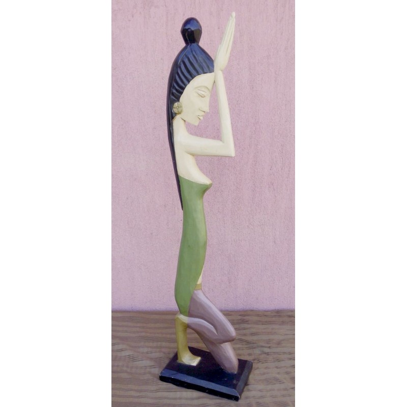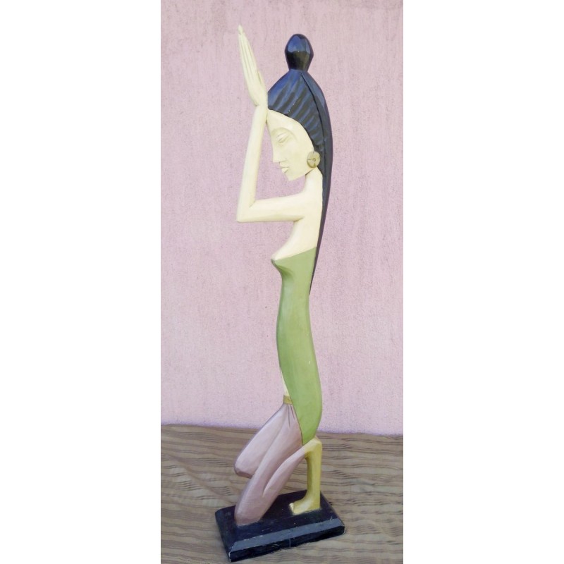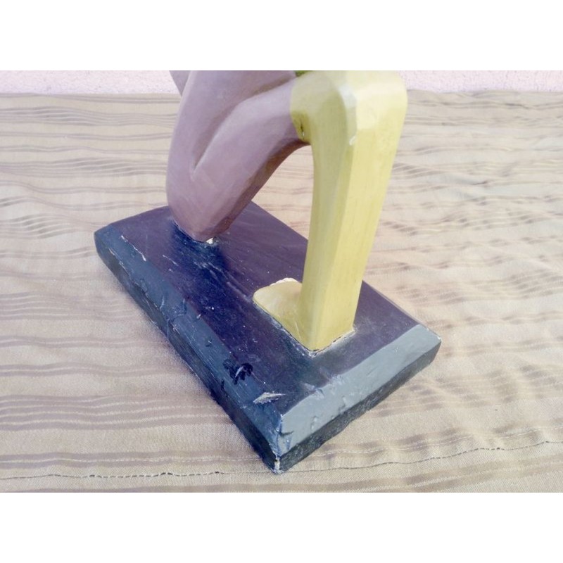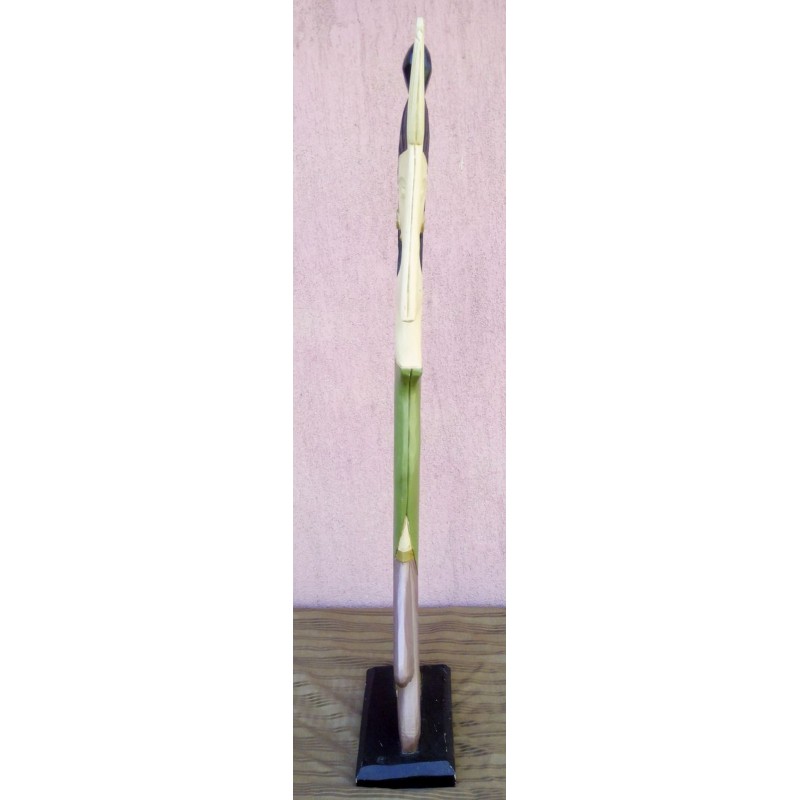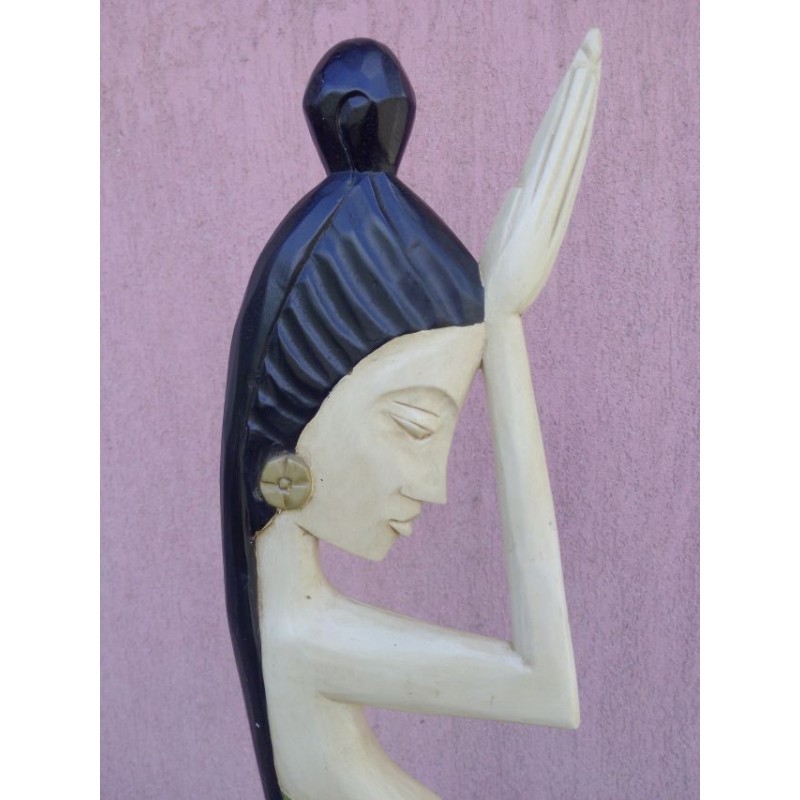 Minden porcikája a szobrász mester munkáját dicséri. Egy darab deszkából faragott, letisztult festett felületű egzotikus faragvány. Ragasztott talp résszel selyemfényű színekkel, nagyon egyszerű, mégis különleges meghitt hangulatot áraszt.  Egyedi dekorációja lehet az otthonod megkülönböztetett helyszínének.