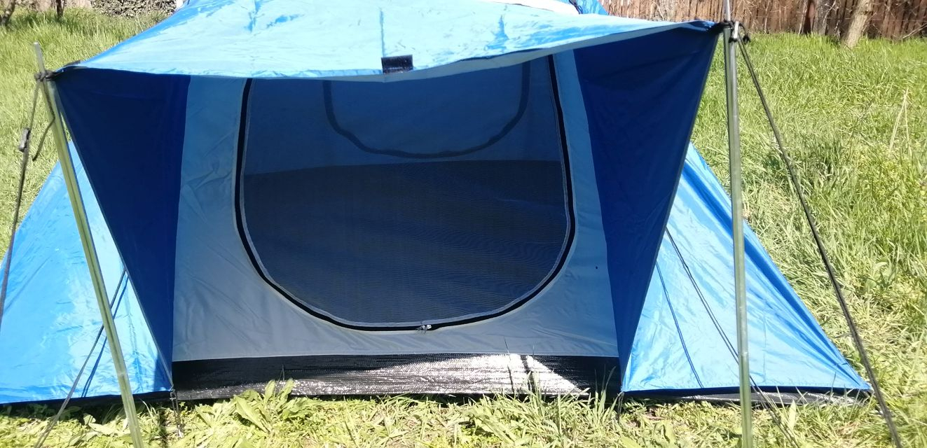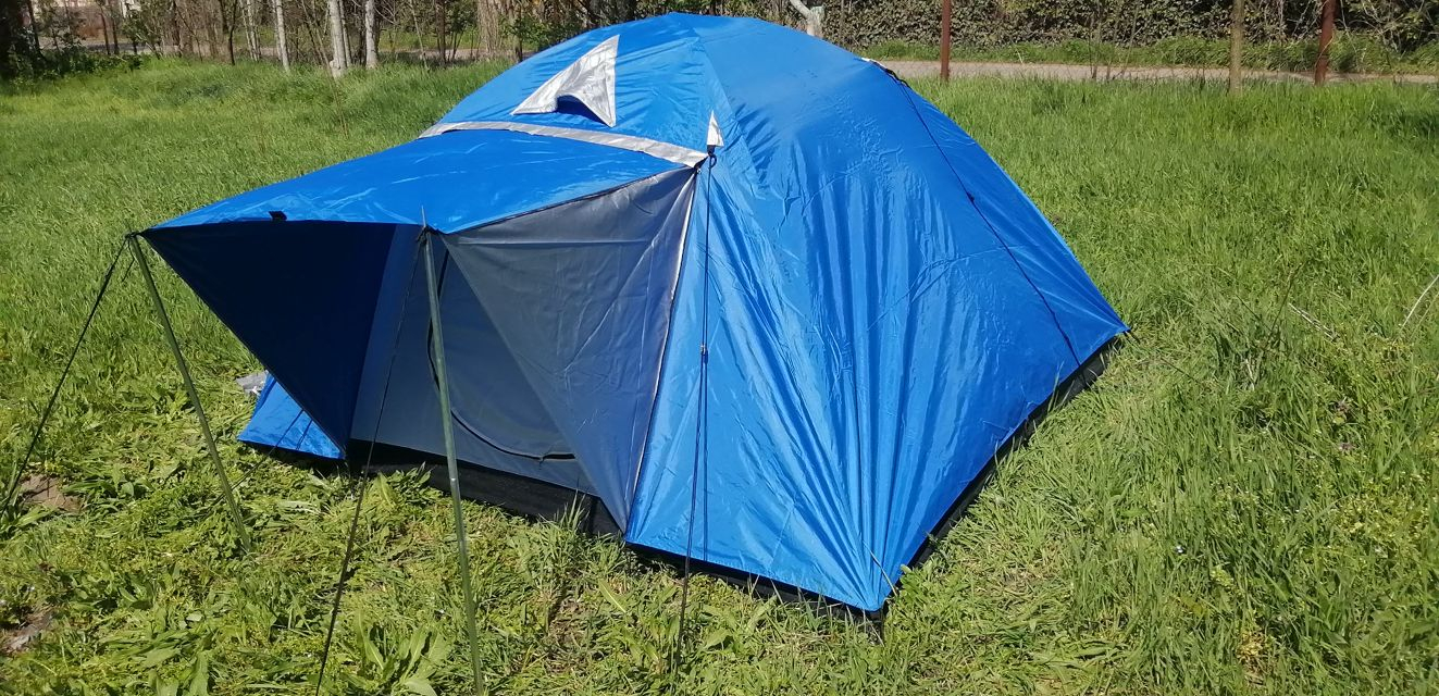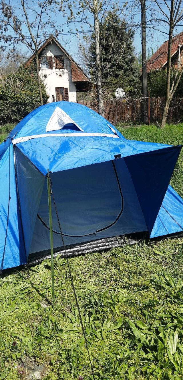 3 felnőtt, vagy 2 felnőtt, és 2 gyerek biztonságos kényelmes pihenéséhez használható esővédő ponyvával, szellőztető ablakokkal, szúnyoghálóval rendelkező két kijáratos, előteres kupolás sátor.