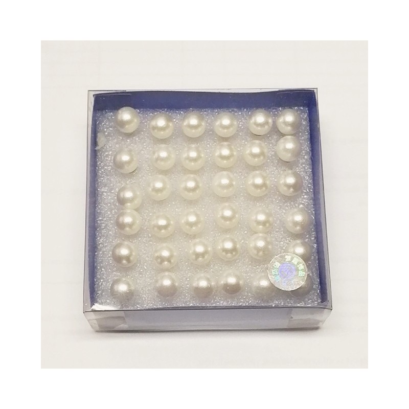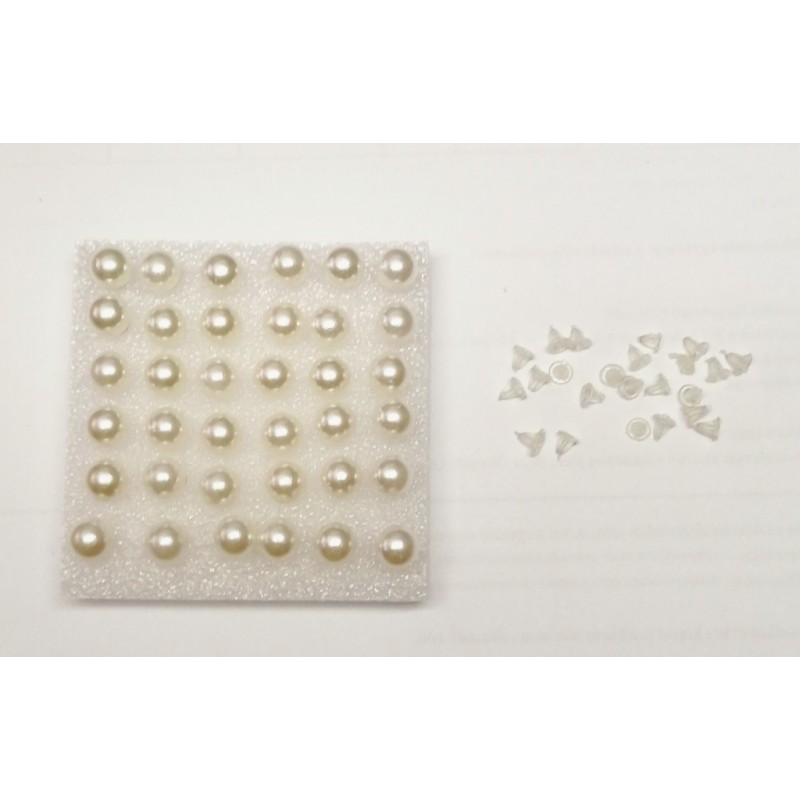 Gyöngy gömbfejes fülbevaló szilikon szárral, és rögzítő dugóval. Egy egész bontatlan 36db-s csomagban.