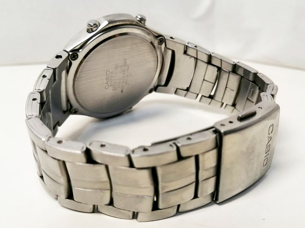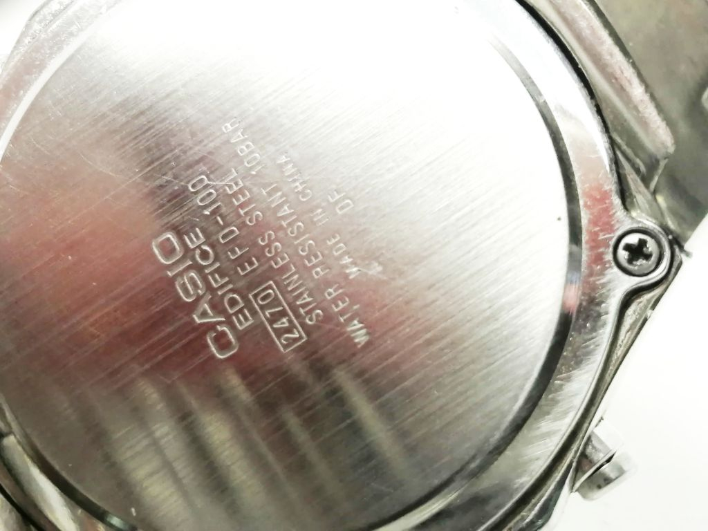 A hátlapon 2470 sorozatszám, Stainless steel Water resistant 10bar, Casio Edifice logo.