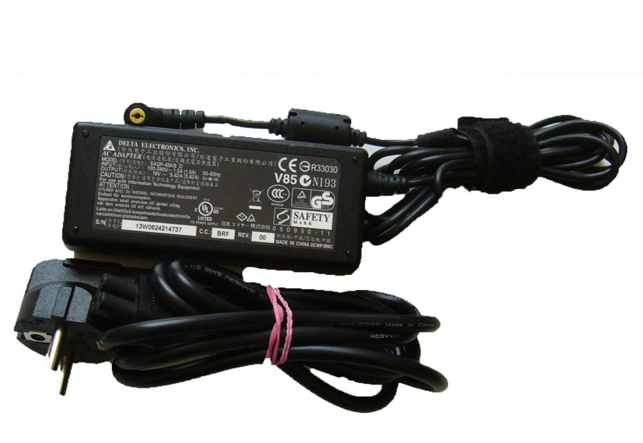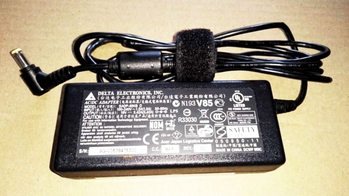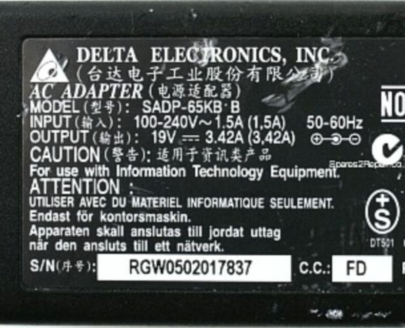 Jellemzők, méretek: Gyártó: Delta Electronics, Inc. Input: AC100-240V (worldwide use) Output: DC19V Power: 65W Max Belső átmérő: 2.5mm Külső átmérő: 5.5mm